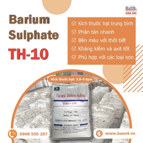 TH-10 là bari sulfate (BaSO4) tự nhiên có nguồn gốc hoàn toàn từ các mỏ barit của Tianhong với quặng barit chọn lọc chất lượng hàng đầu, được chế biến và sản xuất bằng thiết bị và công nghệ tiên tiến, cho ra các sản phẩm vô cùng chất lượng. Là công ty khai thác barit lớn nhất Trung Quốc, Tianhong luôn nỗ lực phát triển và sản xuất các sản phẩm bari sulfate chất lượng hàng đầu, đáp ứng mọi nhu cầu sản xuất của khách hàng.